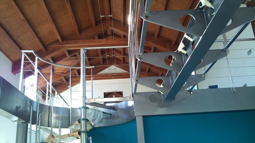 Pasarela realizada en acero al cardono imprimada y lacada con cristales de seguridad para transito de personas de 4,5 mts de largo